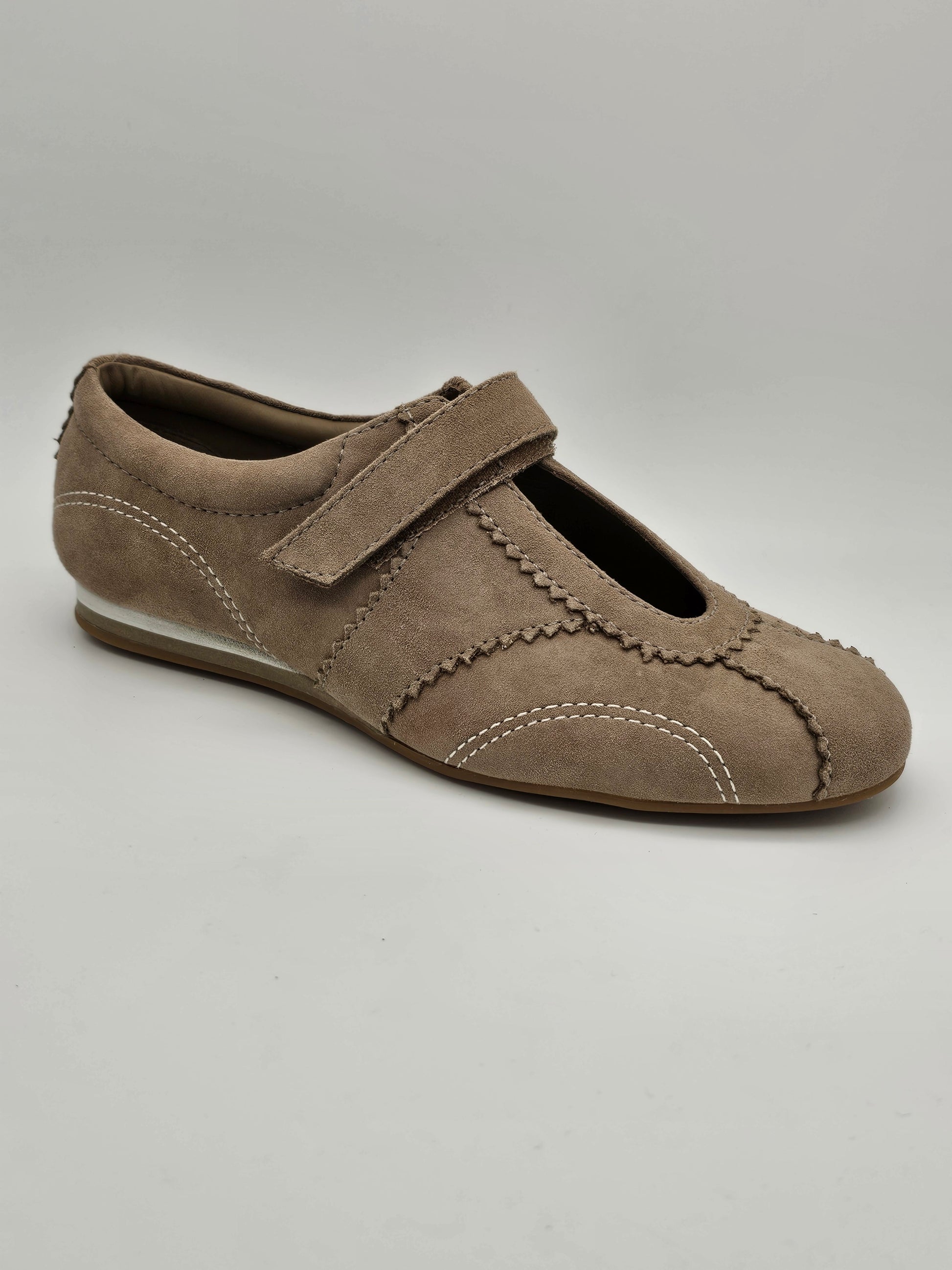 Suede Mary Jane flat with velcro closure